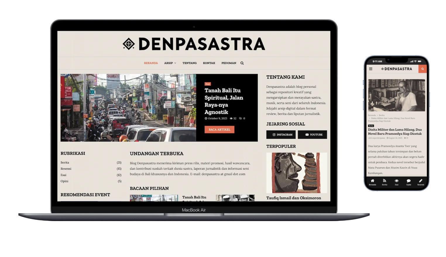 Di Denpasastra, kamu bisa menemukan berbagai konten berkualitas yang berfokus pada dunia sastra dan seni budaya, khususnya di Bali dan Indonesia, dalam berbagai format, antara lain..