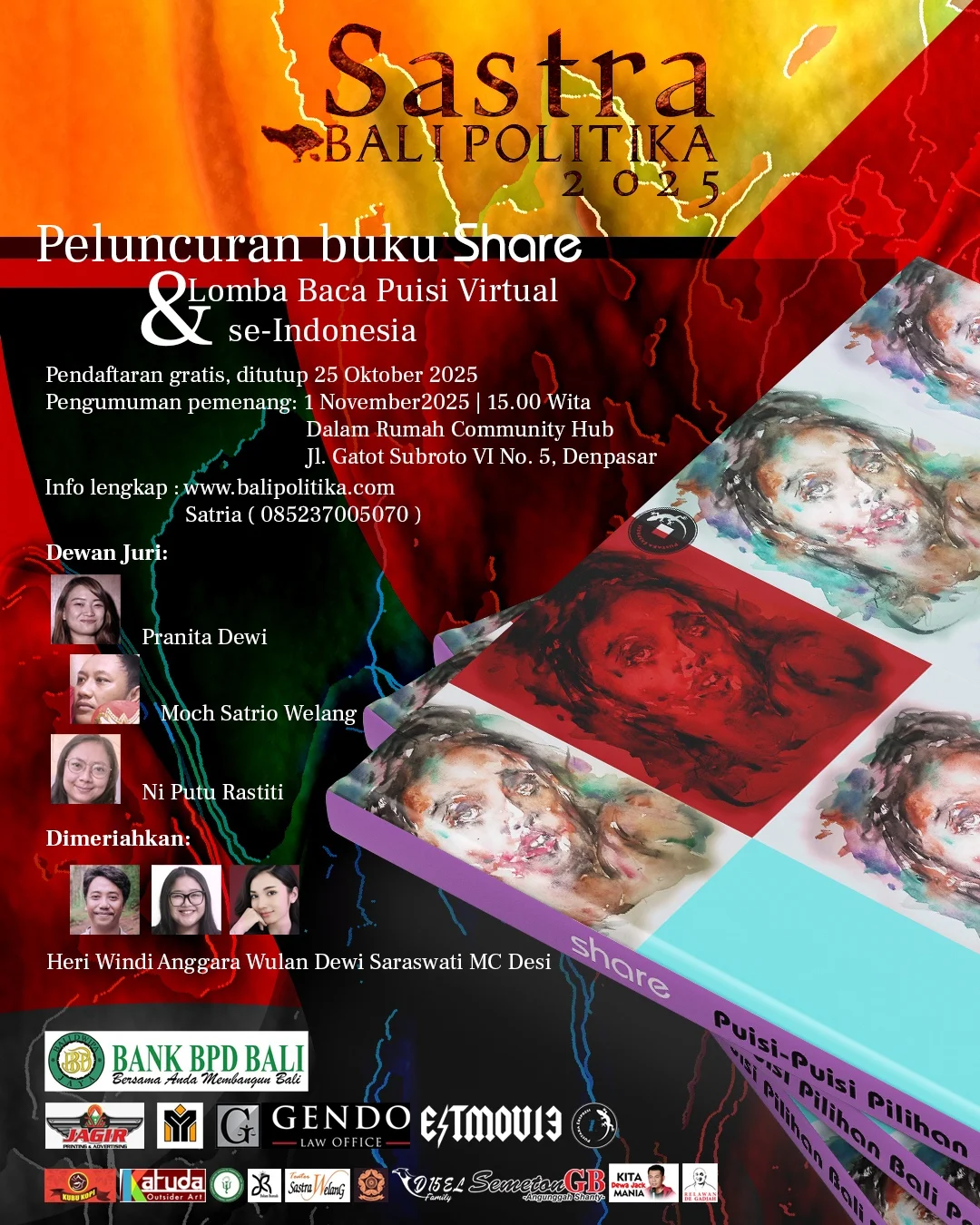 Sebagai penyelenggara, Bali Politika dikenal sebagai media berbasis Bali yang aktif di bidang sosial, budaya, dan sastra. Melalui rubrik Sastra Bali Politika yang diasuh oleh sastrawan Wayan Jengki Sunarta, mereka secara konsisten menerbitkan buku puisi tahunan, di mana edisi kali ini berjudul Share, yang juga menjadi bahan bacaan wajib bagi peserta lomba. Format ini menjadikan lomba bukan sekadar kompetisi, melainkan bentuk apresiasi terhadap karya yang diterbitkan.