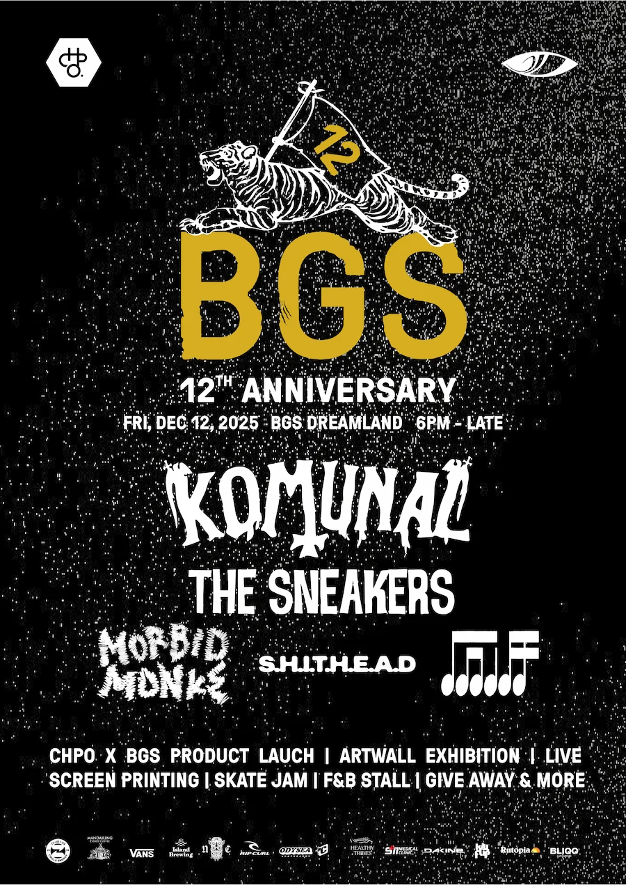 Selain Komunal, panggung ulang tahun ini akan menampilkan The Sneakers, Morbid Monke, S.H.I.T.H.E.A.D dan SN/FF. Agenda lain mencakup peluncuran kolaborasi CHPO x BGS, pameran Artwall, live screen printing, skate jam, serta stan makanan dan minuman.