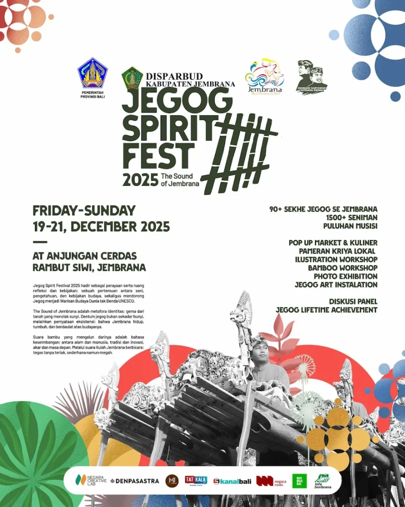 JEMBRANA — Pemerintah Kabupaten Jembrana melalui Dinas Pariwisata dan Kebudayaan akan menyelenggarakan Jegog Spirit Fest 2025 pada 19–21 Desember di Anjungan Cerdas Rambut Siwi. Festival ini menghimpun lebih dari 90 sekhe Jegog dan sedikitnya 1.500 seniman, menjadikannya salah satu perhelatan budaya terbesar di Bali Barat yang merangkum pertunjukan, dialog kebudayaan, lokakarya, pameran, hingga eksperimen artistik lintas disiplin.