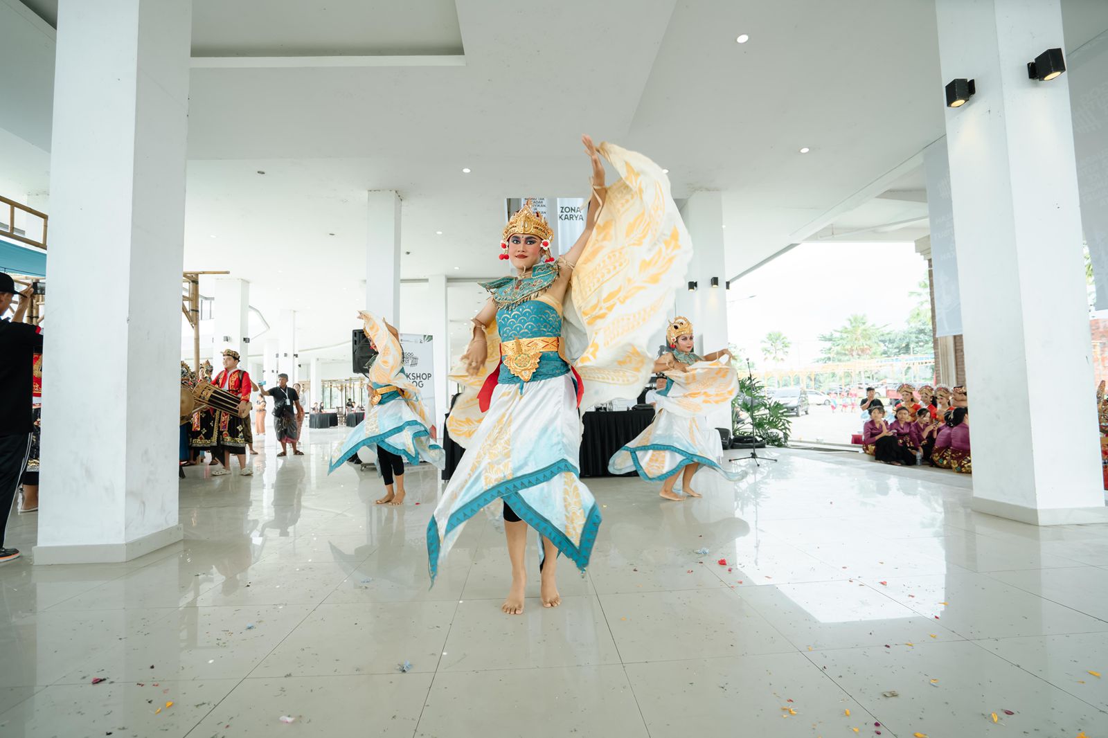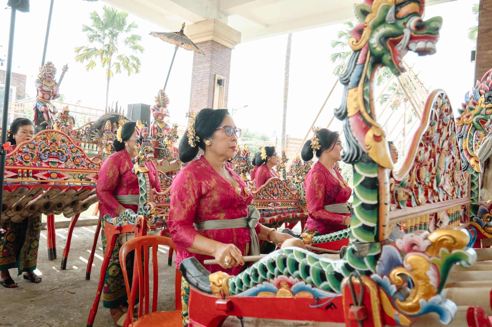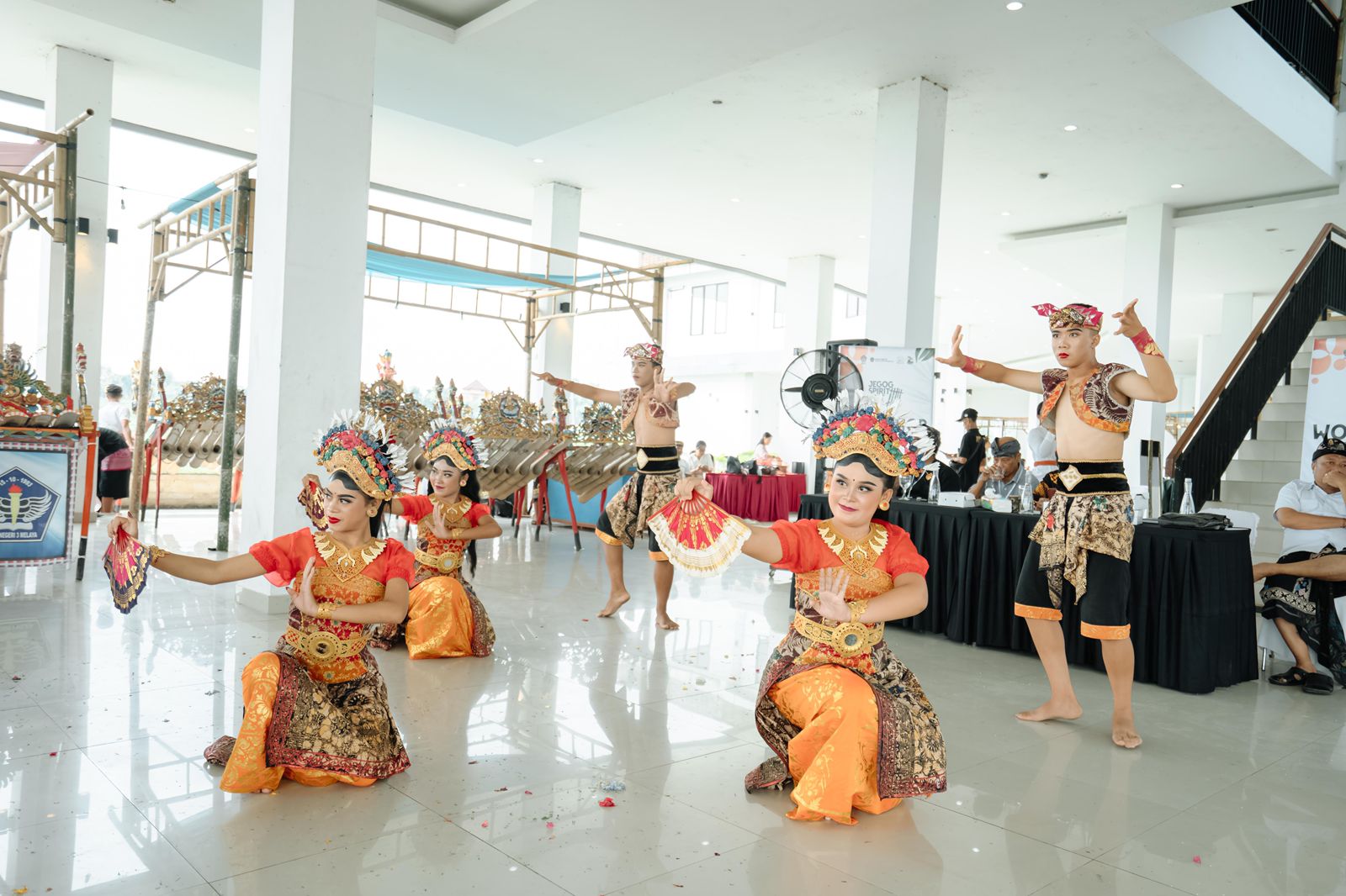 Pagi hingga siang hari diisi Workshop Seni Jegog. Bukan sekadar agenda pengantar, melainkan ruang belajar yang sungguh-sungguh. Pelajar, komunitas seni, hingga sekaa ibu-ibu dari berbagai wilayah Jembrana duduk berdekatan dengan bambu raksasa yang belum sepenuhnya “bersuara”. Di titik ini, Jegog diperlakukan sebagai pengetahuan, bukan ornamen. Peserta diajak menelusuri sejarahnya sebagai gamelan bambu khas Jembrana, lalu masuk ke hal-hal yang jarang dibicarakan di panggung: tuning, pengikatan bilah, dan disiplin kolektif dalam memainkan instrumen yang ukurannya tak memberi ruang bagi ego.