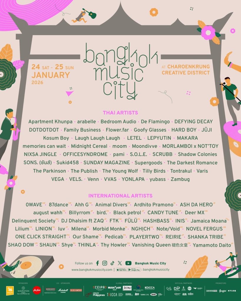 Proyek musik asal Bali, Morbid Monke dipastikan menjadi salah satu penampil dalam Bangkok Music City 2026, sebuah festival musik lintas genre yang akan digelar pada 24–25 Januari 2026 di Charoenkrung Creative District, Bangkok.