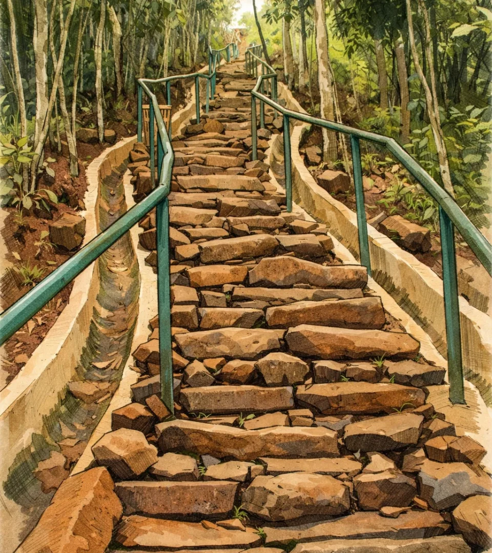 Di hadapan kami, relief naga tampak bergetar samar dalam cahaya terakhir senja.